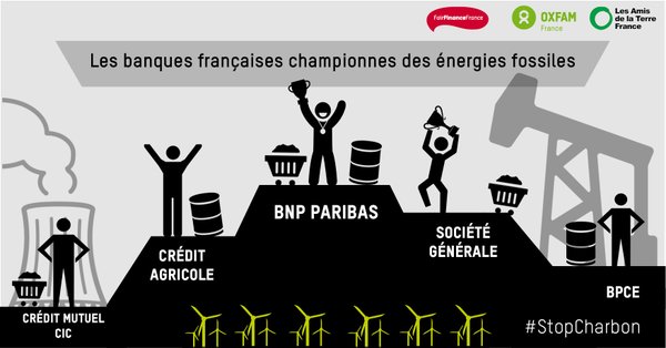 Depuis le sommet sur le climat de Copenhague en 2009, les cinq plus grandes banques françaises – BNP Paribas, Société Générale, Crédit Agricole, BPCE et Crédit Mutuel-CIC – ont soutenu les énergies fossiles à hauteur de 129 milliards d’euros, contre seulement 18 milliards d’euros aux énergies renouvelables.