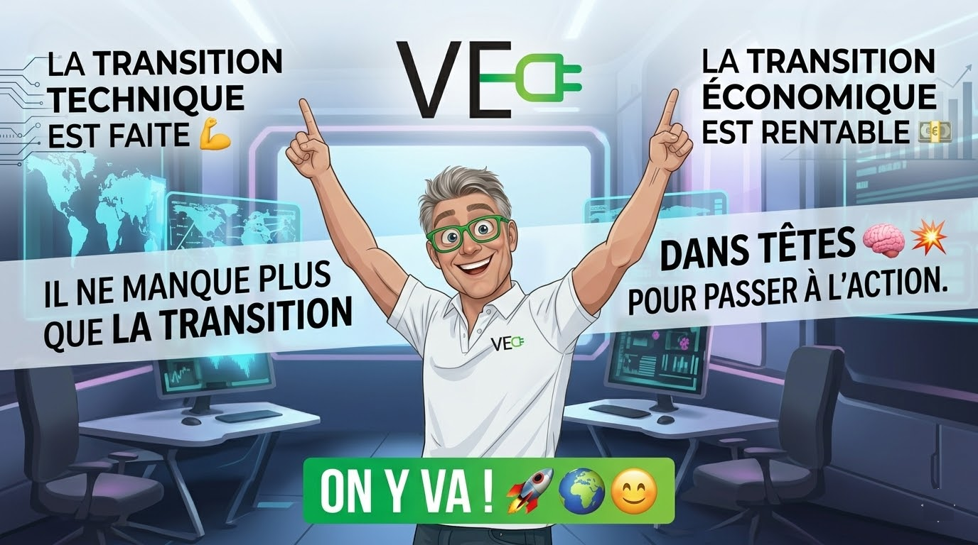 Le Message d’Acti-VE 🎉 : La transition technique est faite 💪. La transition économique est rentable 💶. Il ne manque plus que la transition dans nos têtes 🧠 💥 pour passer à l’action. On y va ? 🚀 🌍 😊