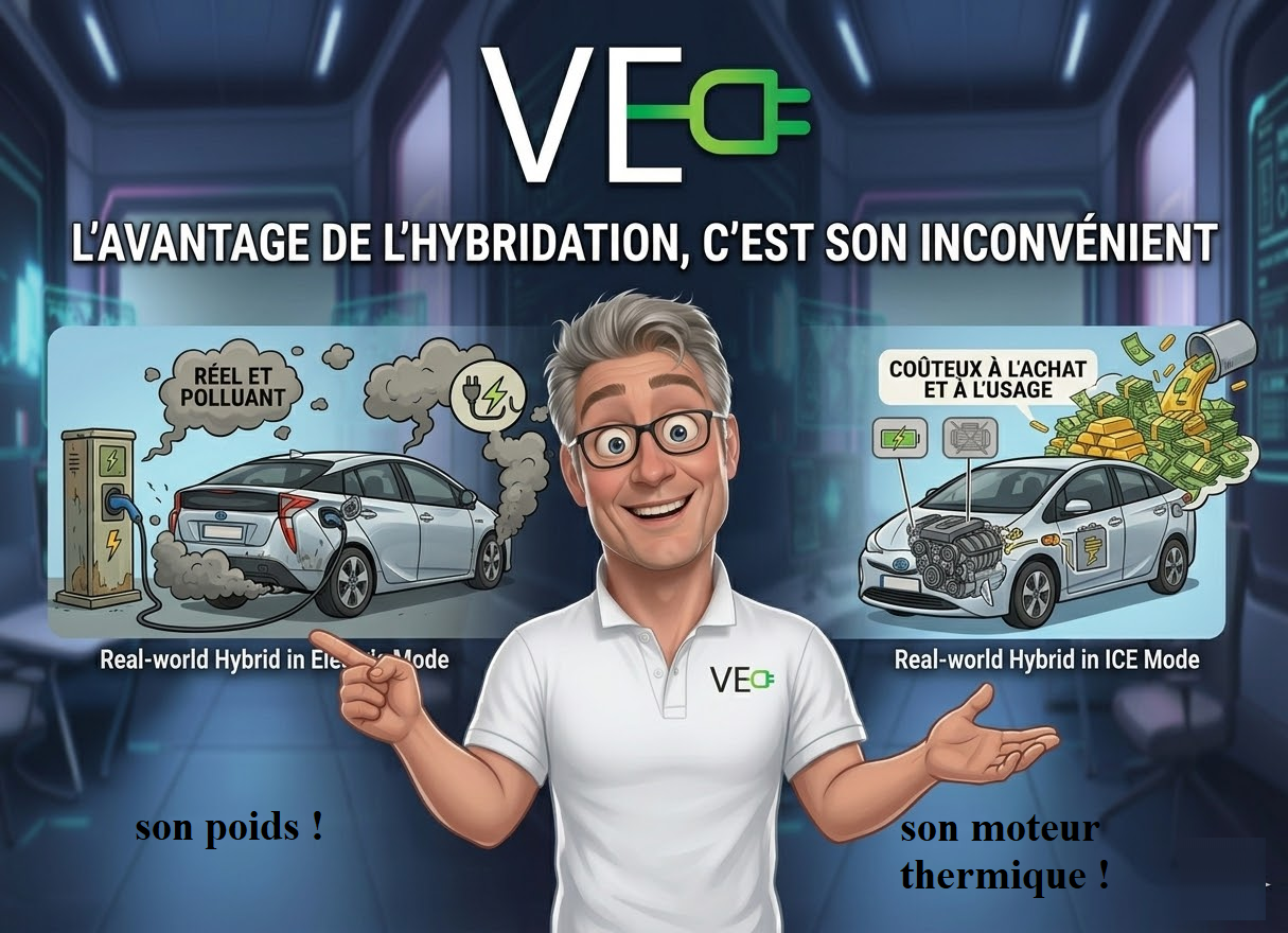 - Hybride (VH) : 🤡 Le pire des deux mondes. Une complexité mécanique inutile pour un gain écologique dérisoire son avantage c’est son inconvénient 🤡 .