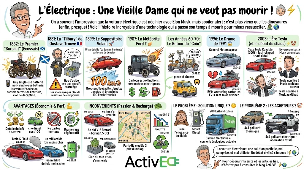 En résumé : De la calèche à l’acide au monstre de puissance moderne, la voiture électrique a parcouru un chemin sinueux. Pour découvrir la suite et les articles liés, faites vous plaisir à consulter le blog Acti-VE ! ⚡🌍